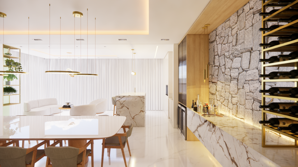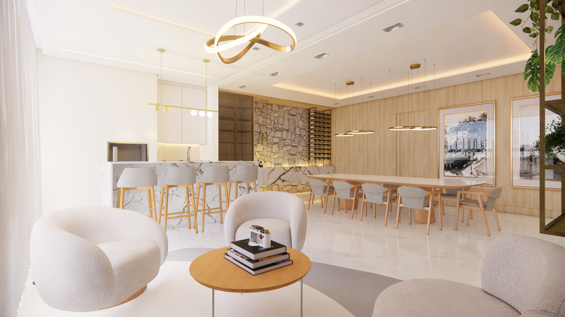 Desenvolvimento de ambientes internos funcionais e esteticamente agradáveis.