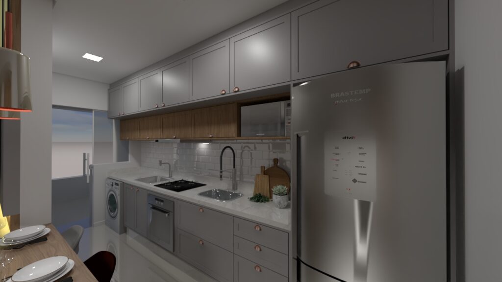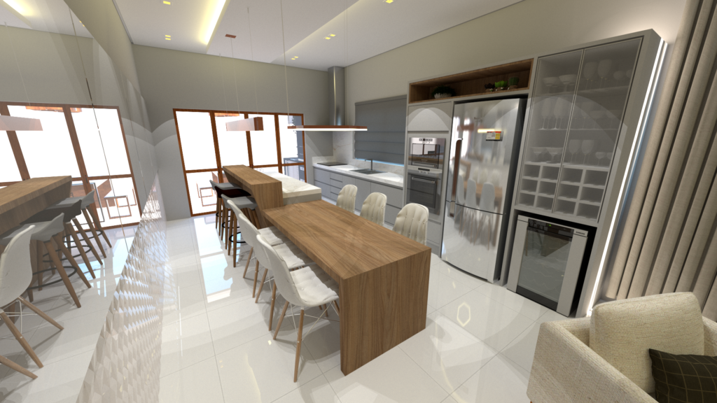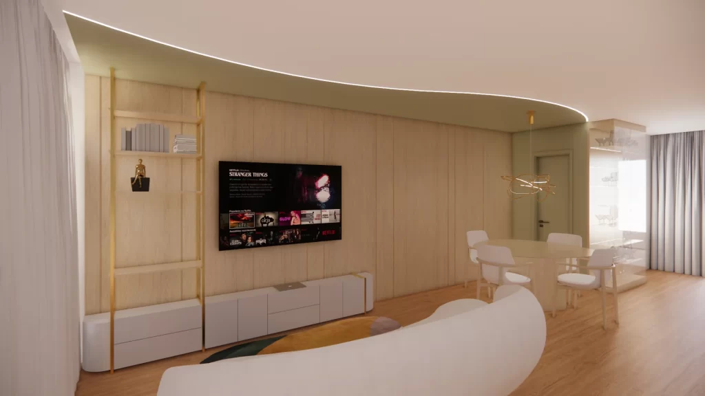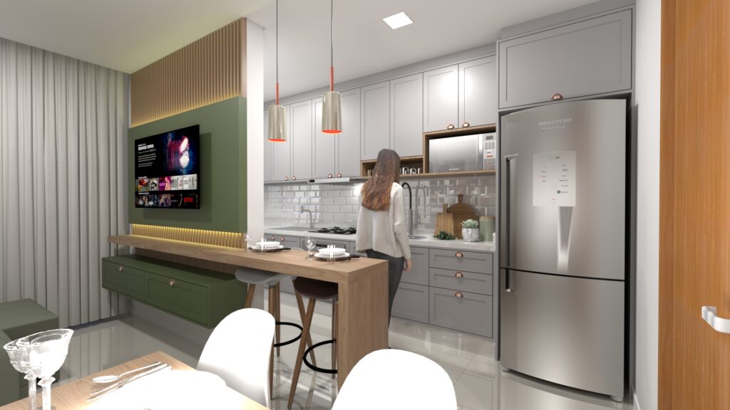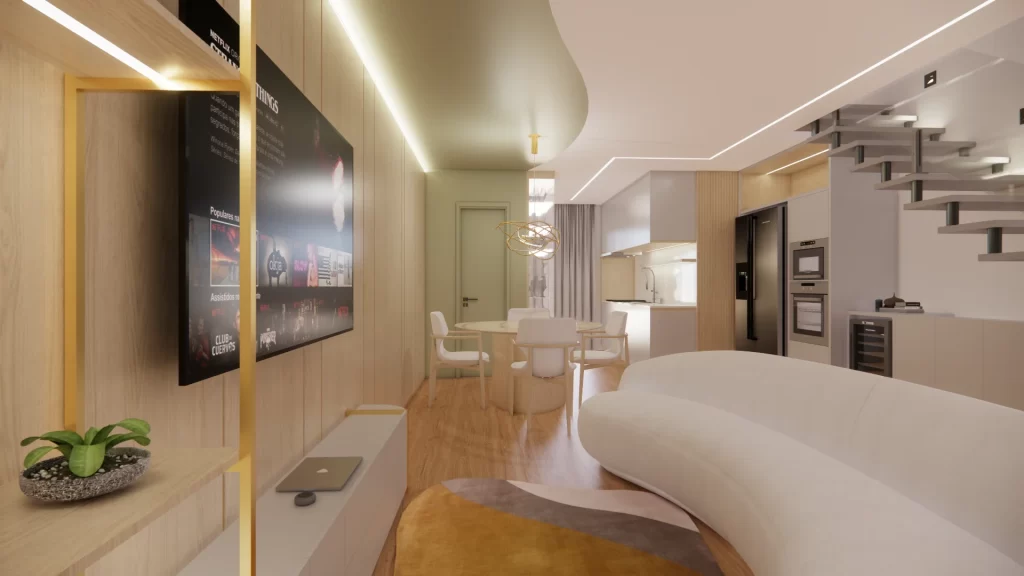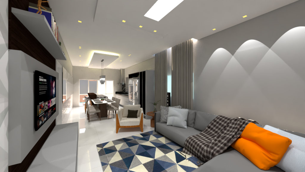 Desenvolvimento de ambientes internos funcionais e esteticamente agradáveis.