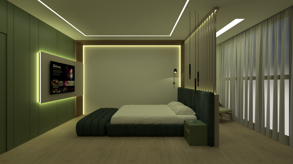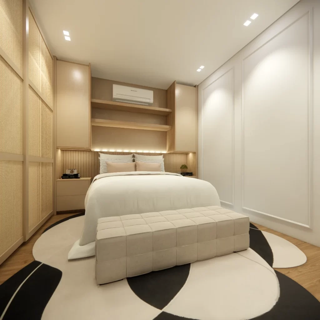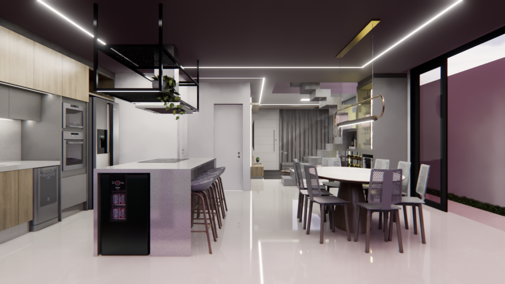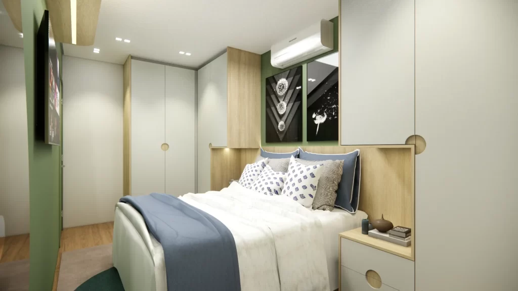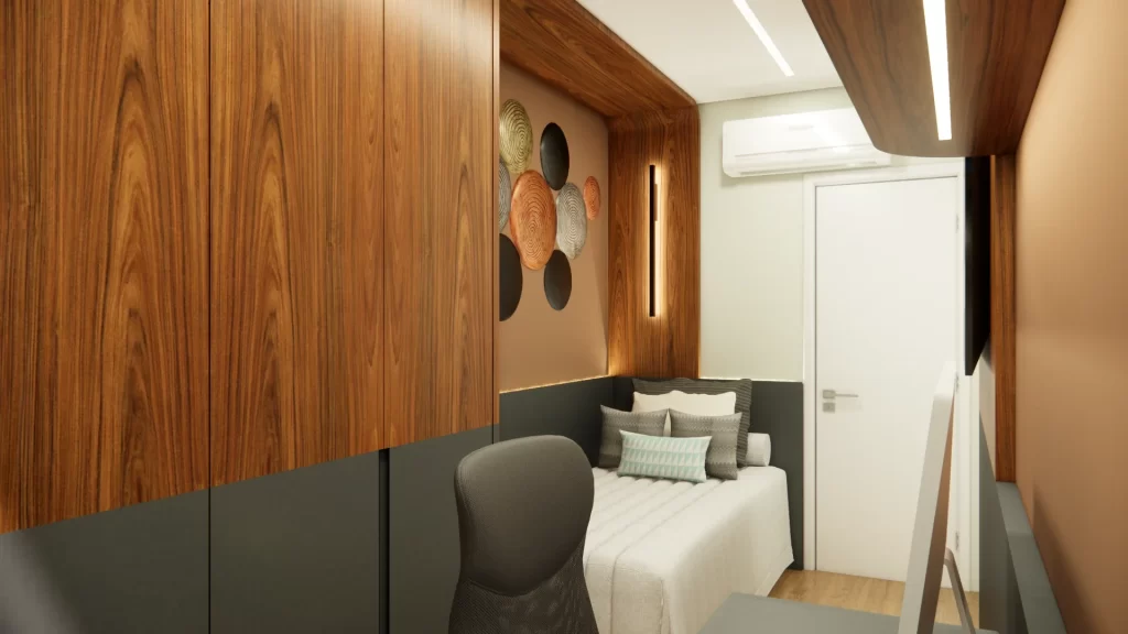 Desenvolvimento de ambientes internos funcionais e esteticamente agradáveis.